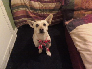 Pet Description:Chihuahua terrier mix. 13yrs old, 6264137957 has pointy ears, perky personality. Weighs around 17 lbs. Has episodes of seizures. Neutered. Red collar 6264137957 |