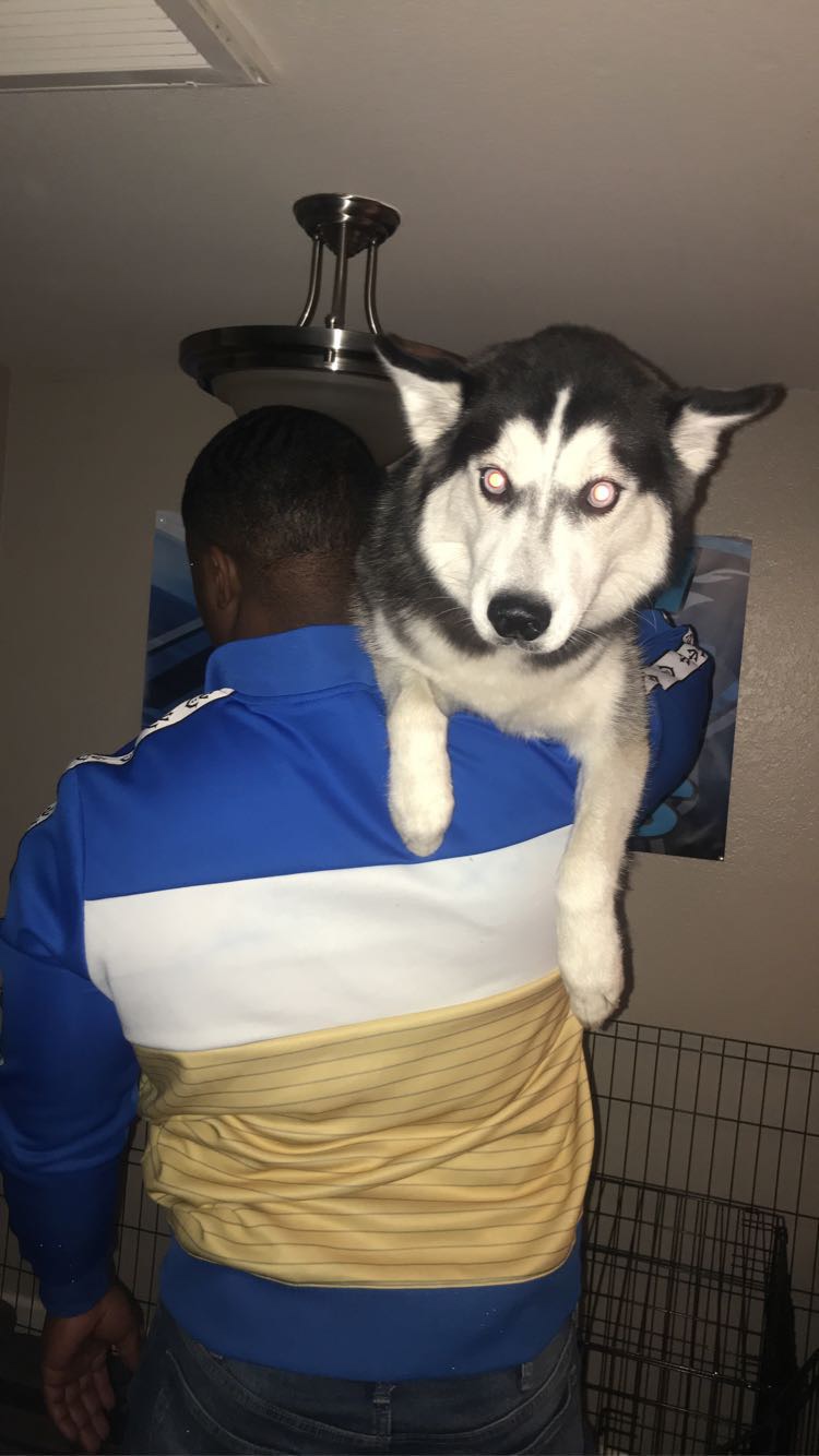 Pet Description:Aiko is a Siberian husky. She’s almost two years old. She isn’t full sized yet, she’s about 50 pounds. Thick black and white coat, blue eyes. She’s super hyper active and friendly NOT aggressive. She’s super playful and loves people. Her name is pronounced “eye-co.” |