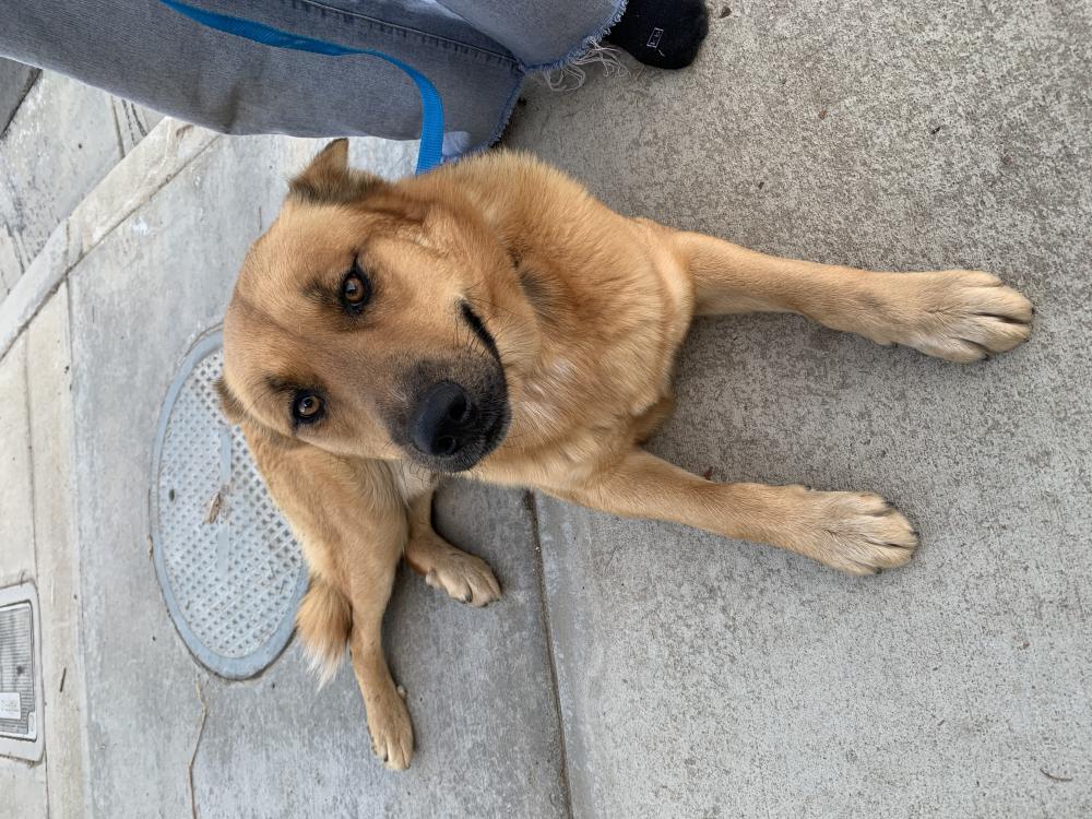 Pet Description:large light brown tan dog kind nature light brown eyes |