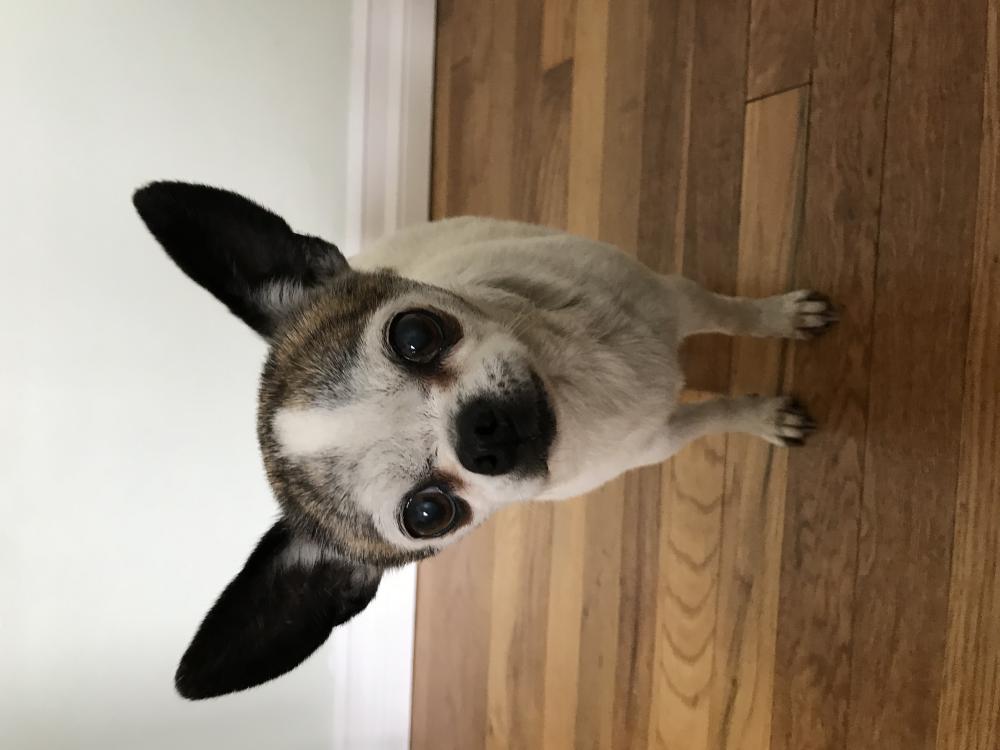 Pet Description:Small older white and brown female chihuahua. Very sweet and calm. Chipped, but posting here just in case owners cannot be reached |