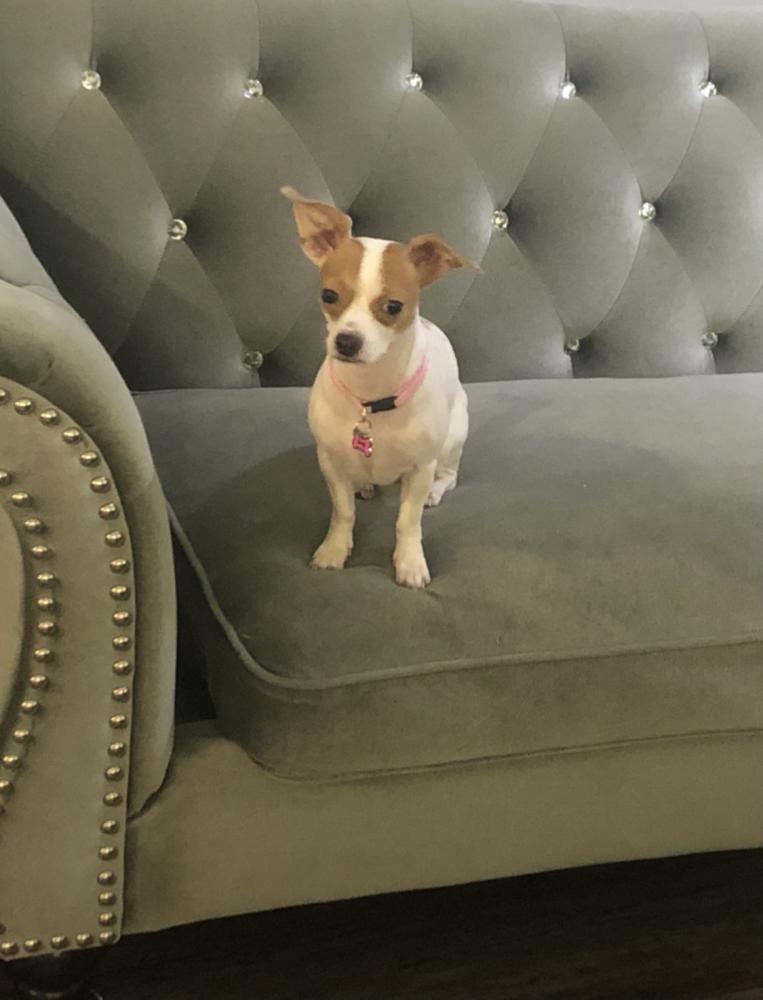Pet Description:White with eyes and ears light brown chihuahua /jack Russell she was wearing a pink collar with a tag with her name on it with two contacts we believe she is pregnant has light brown spots on the back as well. We miss her . Please help us find her . Thank you. |