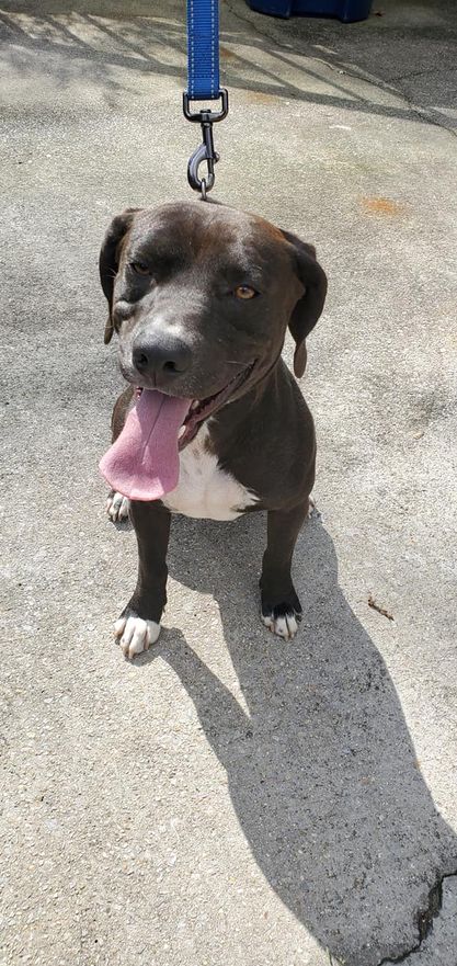 Pet Description:40 lb, dark brown, white chest, white toes, very affectionate. |