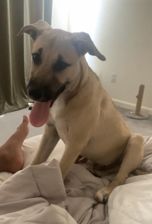 Pet Description:German Shepard/ Pit bull Tan-cream colored with white paws |