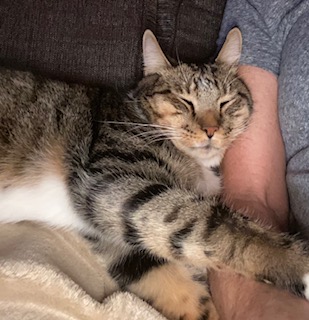 Pet Description:Dolce is a grey, orange and brown tiger with white paws and white chest. Also a little white star on his forehead. He had on a blue collar, he is chipped and he is shy. |
