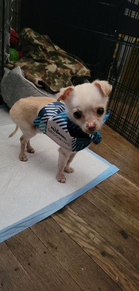 Pet Description:Bean is 2.5 lbs.,has a small knick on his ear. He was taken from 96th & Birch St in Oakland. He has a liver condition and needs his medicine. He just went to the groomer today and has that bandana. |
