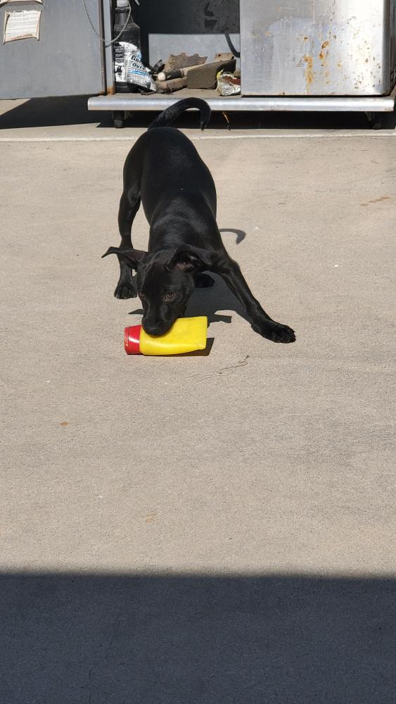 Pet Description:Chevy is a sweet chihuahua/pitbull mix. He's all black and only a few months old. He's about a small to medium size dog. |