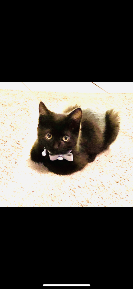 Pet Description:Very friendly black cat with gray collar with a bell. |