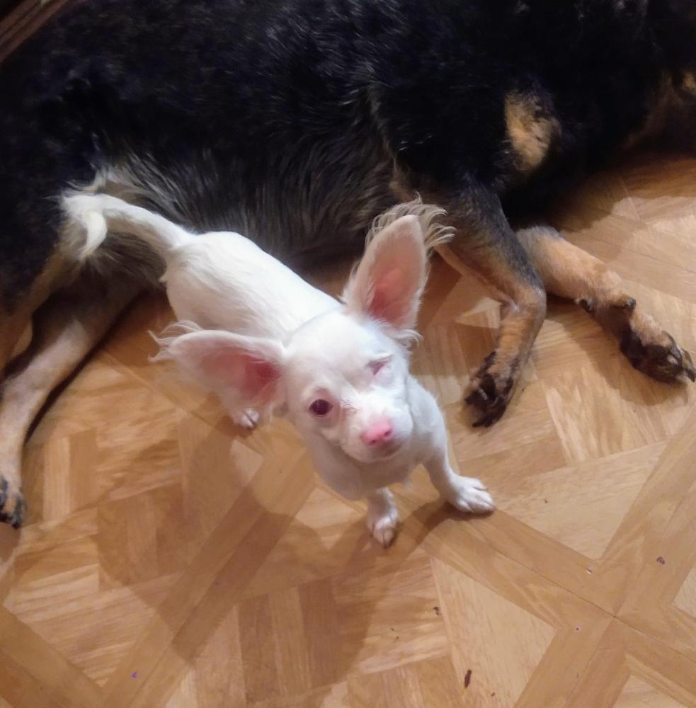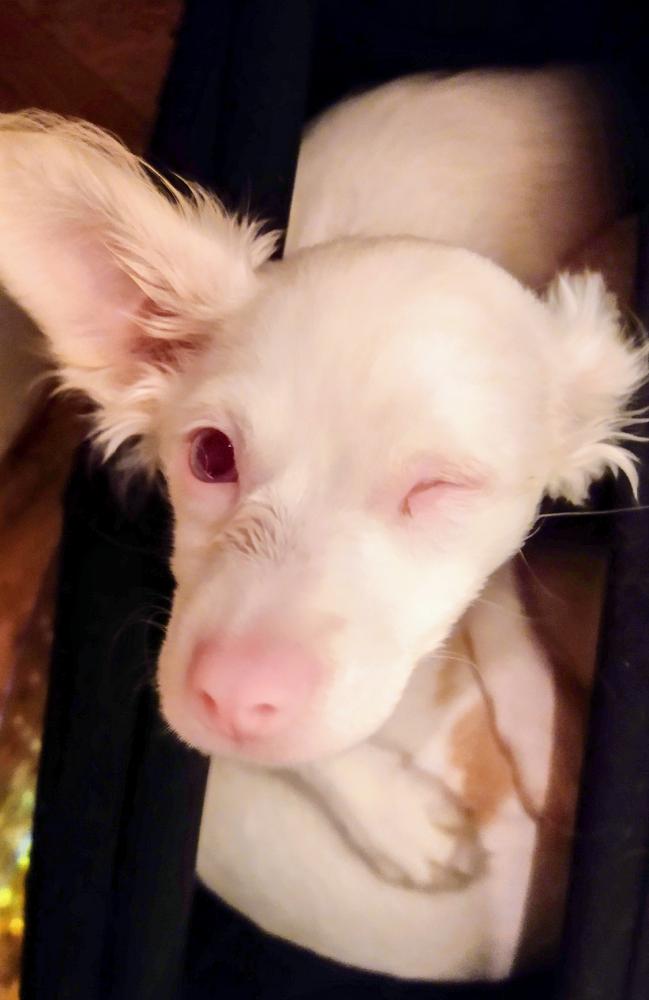 Pet Description:THERE IS A REWARD! She's just a puppy, born Dec 8th, about 5lbs. She was born without an eye. She's albino, so she's all white and has a pink nose, ears, and paws. She uses her ears more than anything because she can't see too well so when she sticks them straight up in the air, the long hairs on her ears look like whiskers sticking straight out. She's a long hair Chihuahua, and it's kinda wavy please please please I UNDERSTAND IF SOMEONE SOLD HER TO YOU, I WILL PAY YOU BACK I'M NOT INTERE |