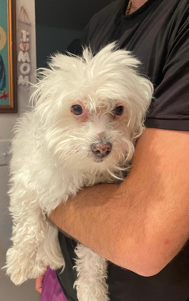 Pet Description:She’s small, white, 10 lbs, pink around nose and eyes |