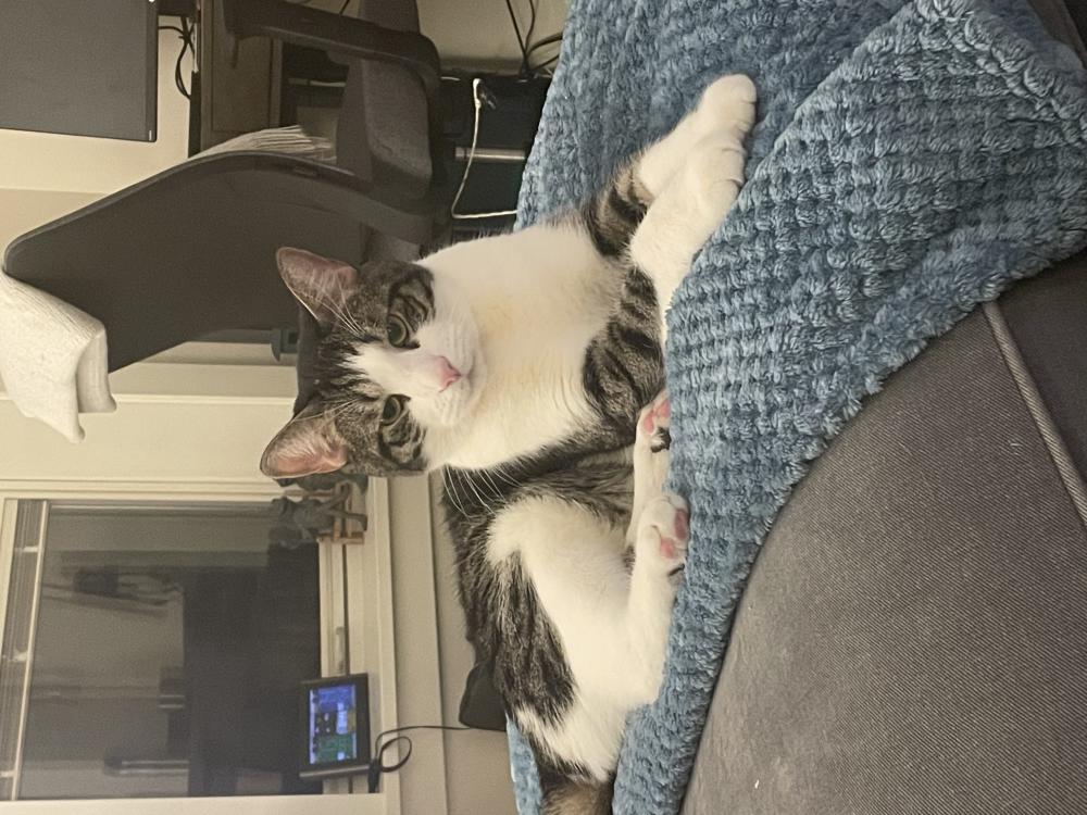 Pet Description:Grey and white tabby with distinctive white spot above tail. Very timid and fearful |