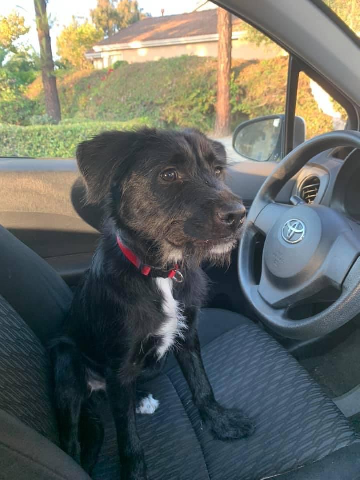 Pet Description:Black with white chest. White back paws. Ears are droppy. Light blue collar. |