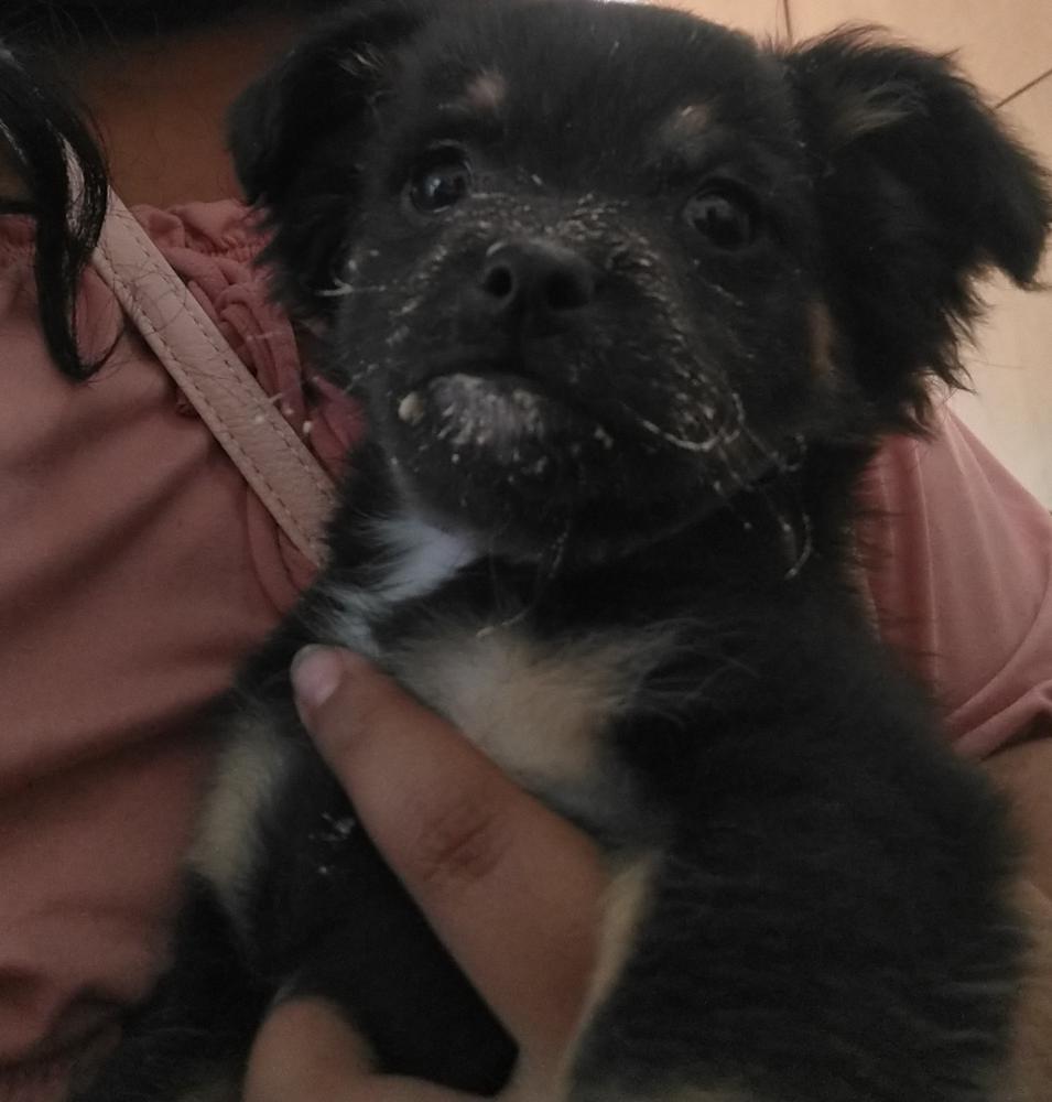 Pet Description:she is small and is black with tan markings. she has little eyebrows and her paws are tan. she has a mark on her stomach too |