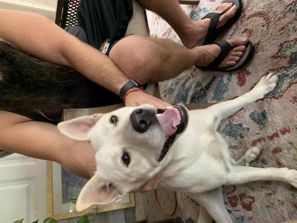 Pet Description:Very friendly white girl, mixed breed No collar and followed me home, no road sense and would have gotten hit by a car Hope to find its owner |