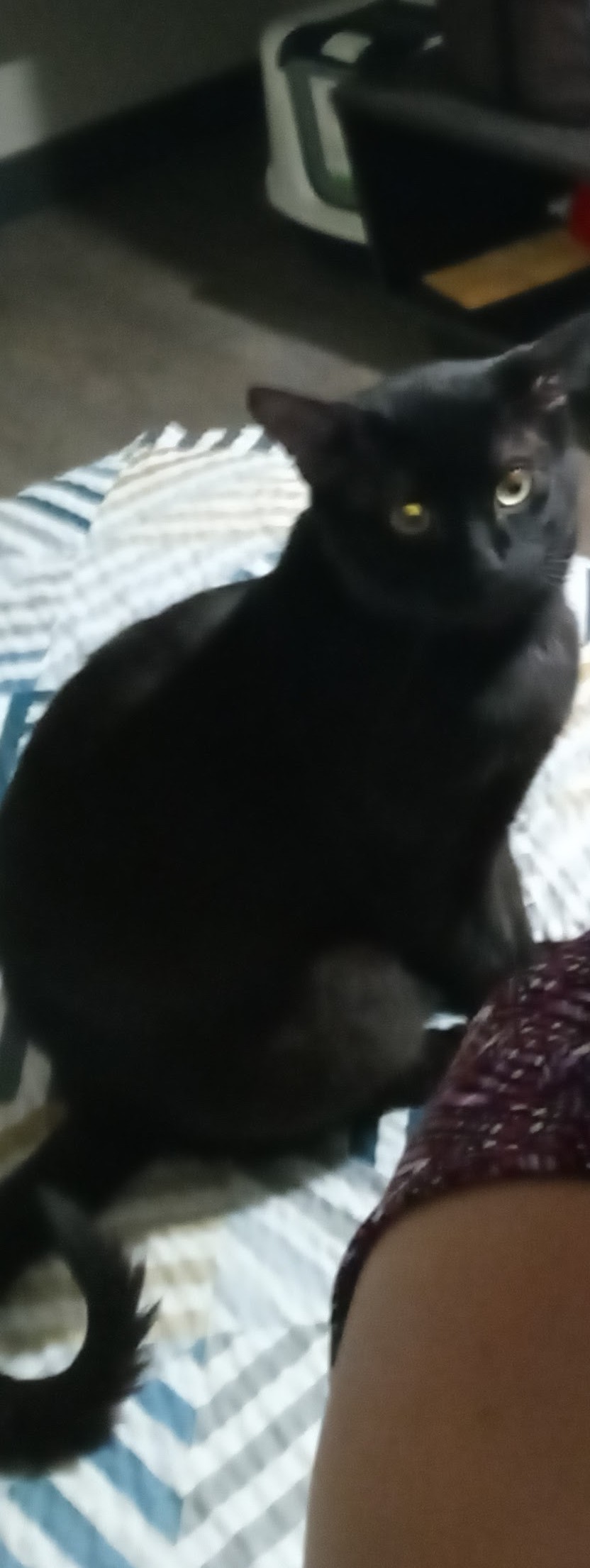 Pet Description:Malcolm is all black and thin. He has flat smooth hair. Balding hair in front of ears. He has green eyes and a long tail. Malcolm is 2yr old. No collar. Long legs. |