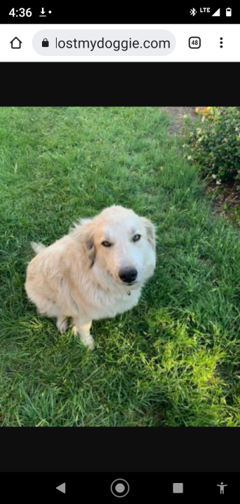Pet Description:Our Great Female Pryenesse long haired white dog ran away during the storm 10/25/2021. She has a red collar and weighs about 75-90 lbs. Lost on Gillis Rd. Stockton Please contact me at 209 954-8387 or Bob Stockton 209 403-7678 |