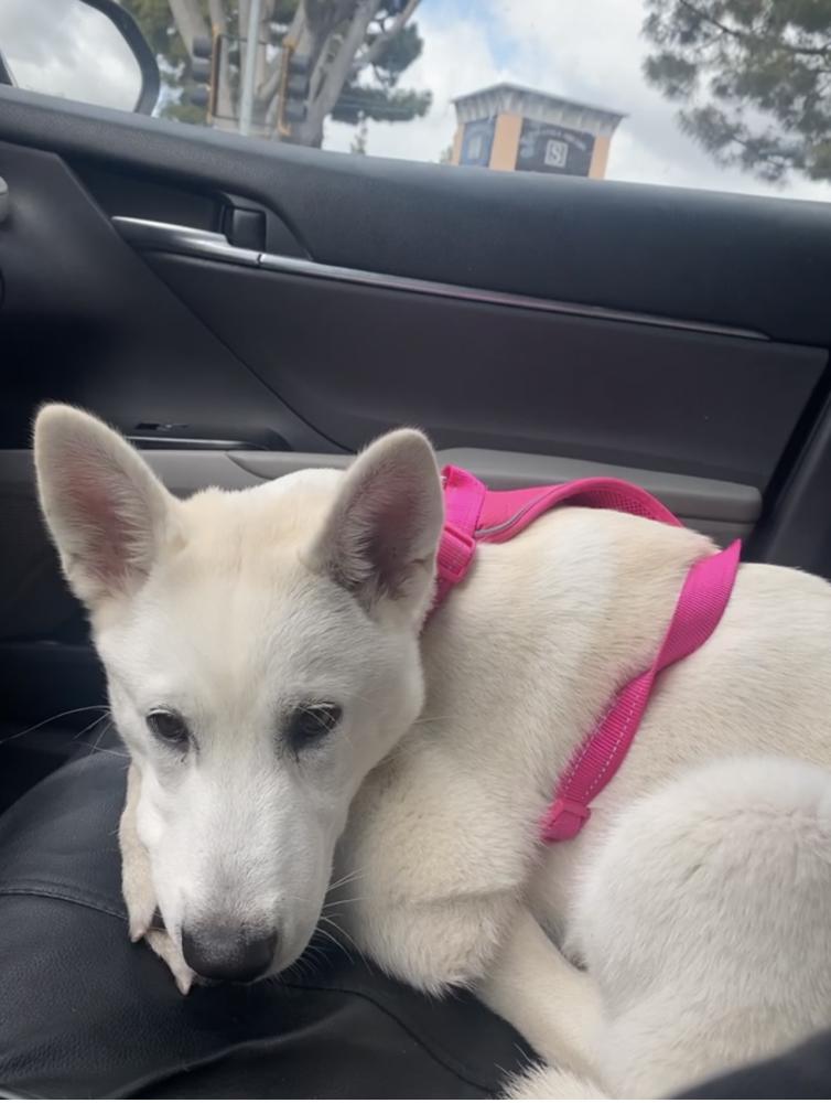 Pet Description:Her name is nova she’s a white dog ; big , she has about brown eyes |
