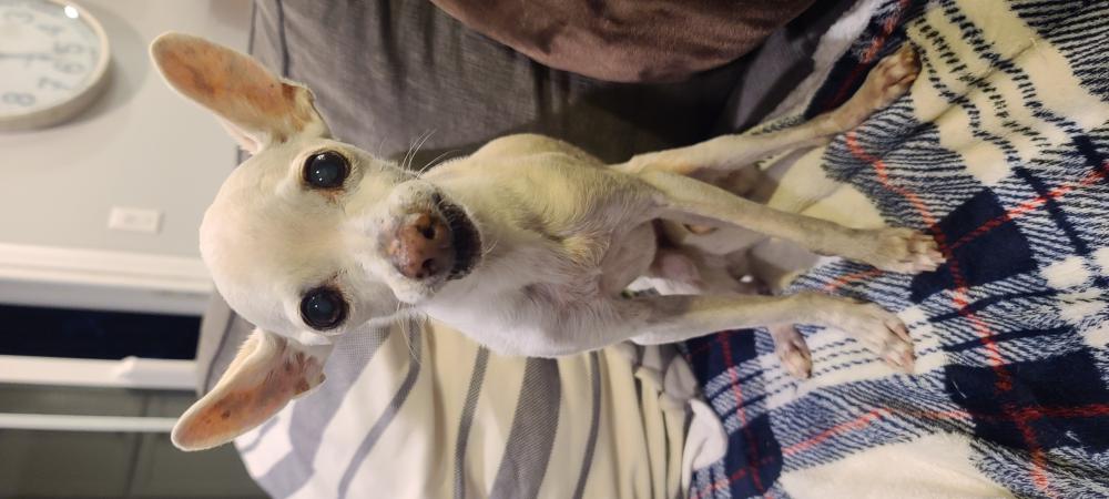 Pet Description:Elderly white chikuajua w long legs and big ears. Very skinny |