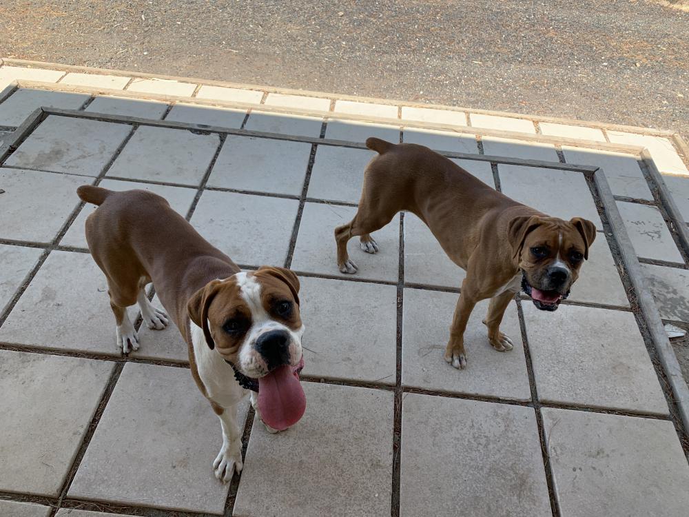 Pet Description:Male brown with white stripes. Female brown both about 60 plus lbs |