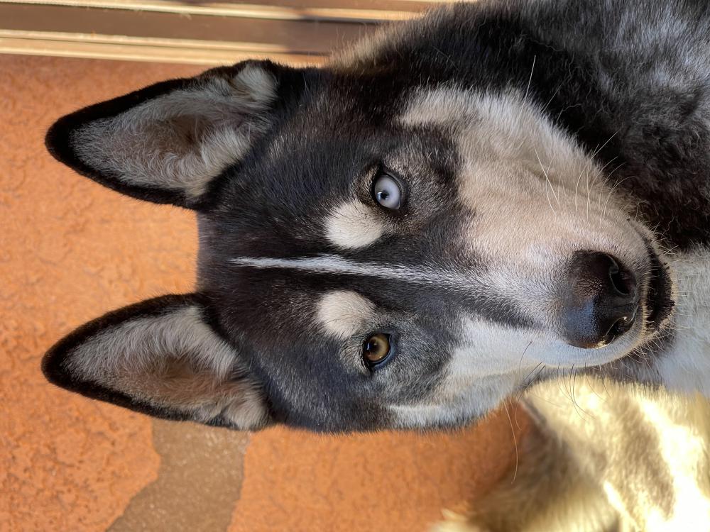 Pet Description:He is a husky he is medium size he is a smaller husky size he has different colored eyes and has a white spot on his back |