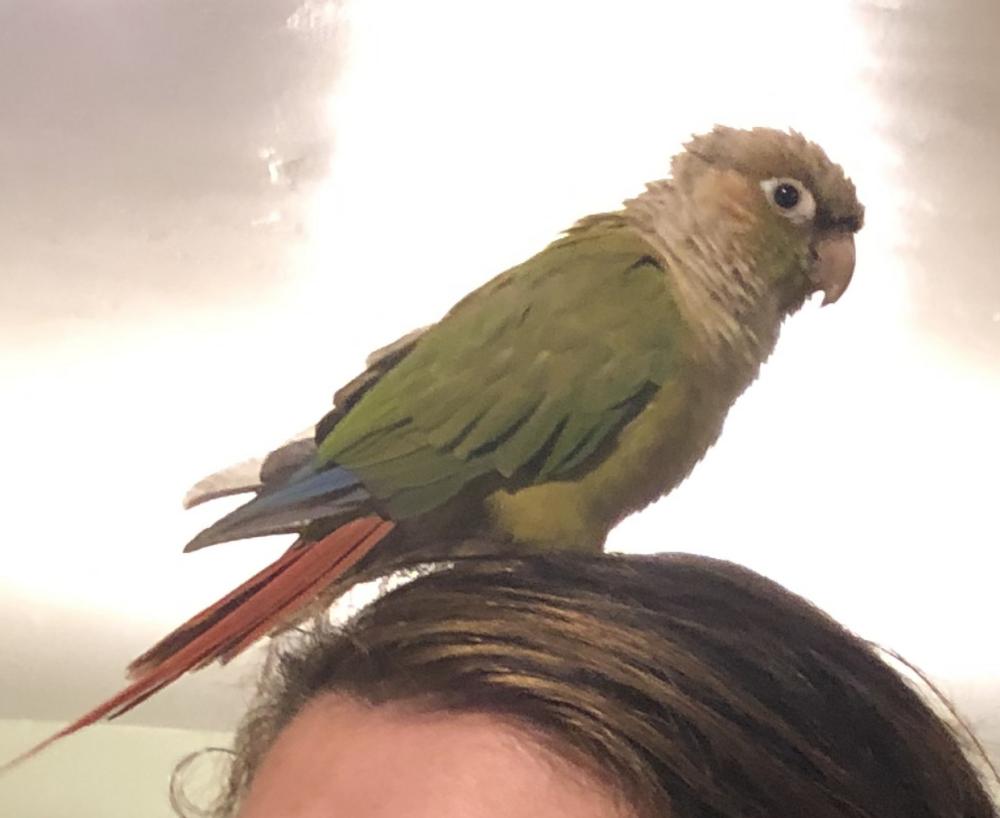 Pet Description:Lost my baby. It’s a Cinnamon Green Cheek Conure. I need your help. I opened my front door to get my fedex package and my little green bird flew out. It was near Yana Dr and Bowles in Garden Grove, California. If you see a little bird maybe 8-12 inches long head to tail let me know. She has green back, tail feathers are pink and head is beige. Chest and belly is beige and red. I feel bad for that little quitter since it’s raining and she just learned to fly too. Thanks everyone! My cell is ( |