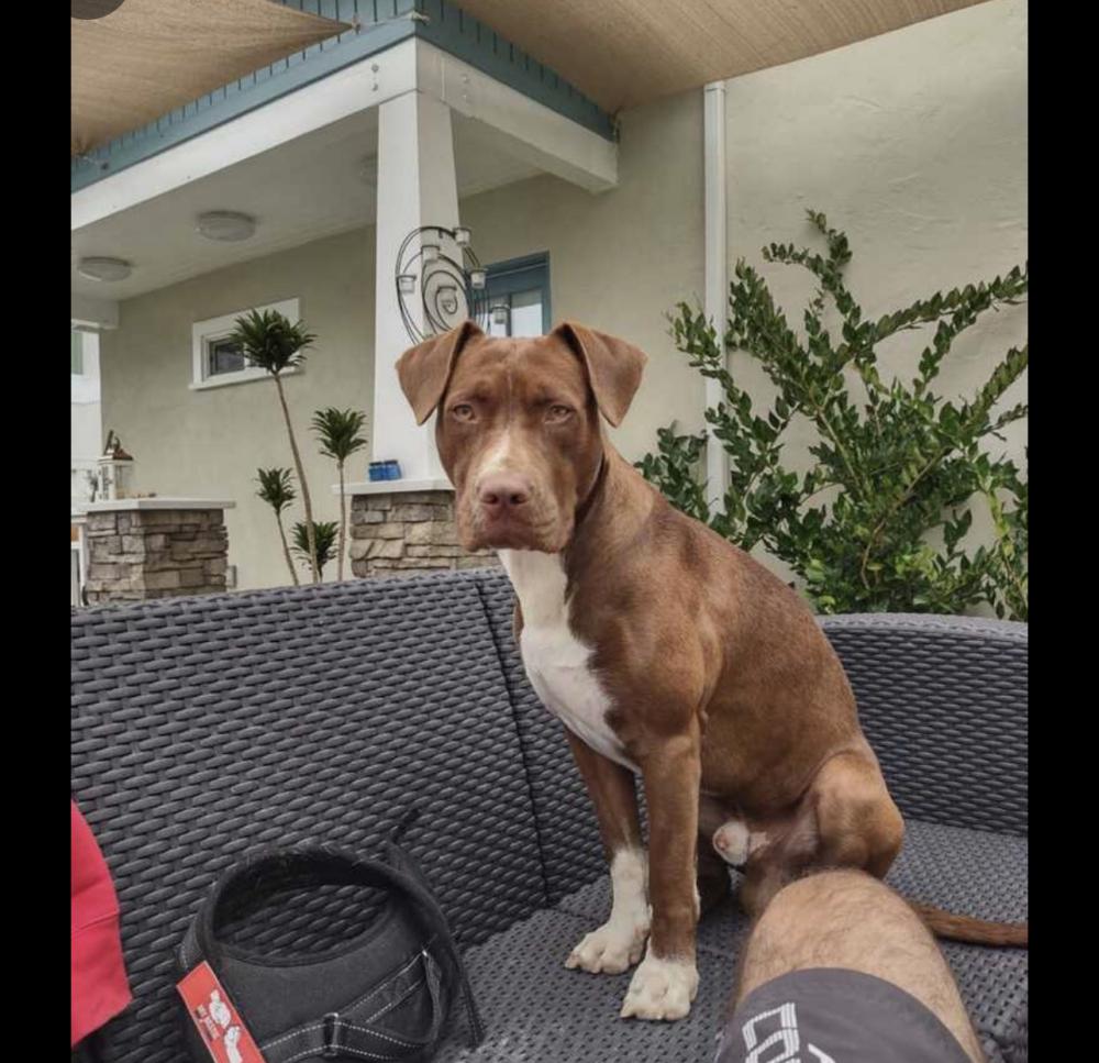 Pet Description:he has orange collar and white fur on all four of his paws and white fur from little down his down all the way down to his stomach. |