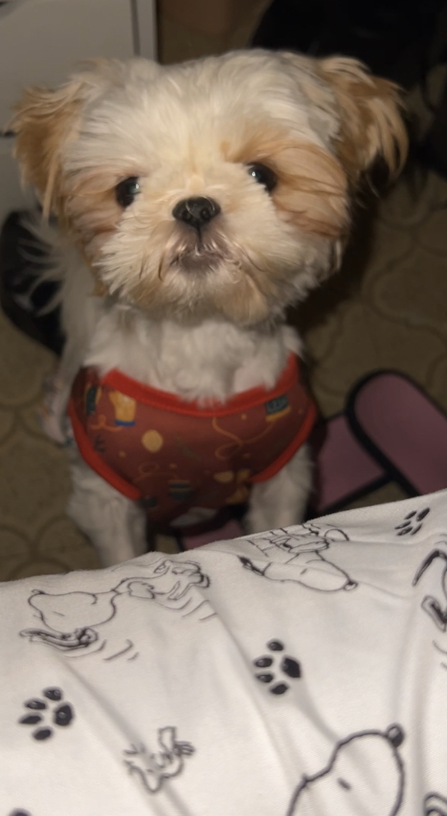Pet Description:She was wearing a red Christmas sweater. She was also wearing a diaper. She has a sister at home that misses her a lot. She’s also really friendly. |