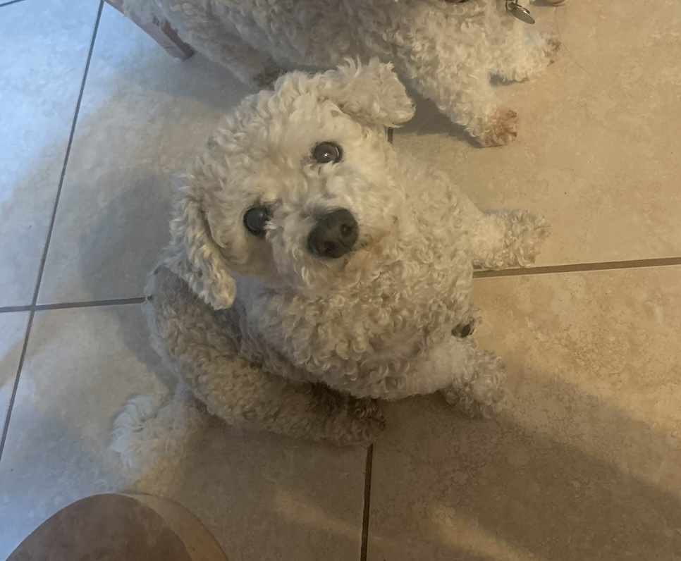 Pet Description:Wearing a sweater , blind from one eye White but dirty |
