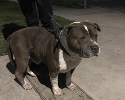 Pet Description:My name is Grimm. I am 8-years old and allergic to chicken. I have skin allergies. I was lost of Tuesday, February 15th from my backyard. I live off of Rosecrans between Inglewood and Hawthorne. It sounds like someone found me the night of the 15th and tied me to a door of a vets office. We do not know who that person was or who has me now. My family has had me since I was a puppy. I am a short blue nose pitbull and weigh about 71 pounds. I am not chipped and am intacted. My daddy died of pancr |