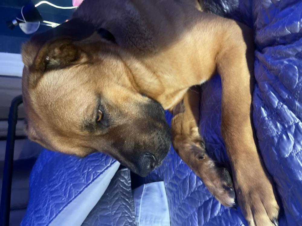 Pet Description:He looks a lot like a St. Bernard he’s a terrier pittie mix |