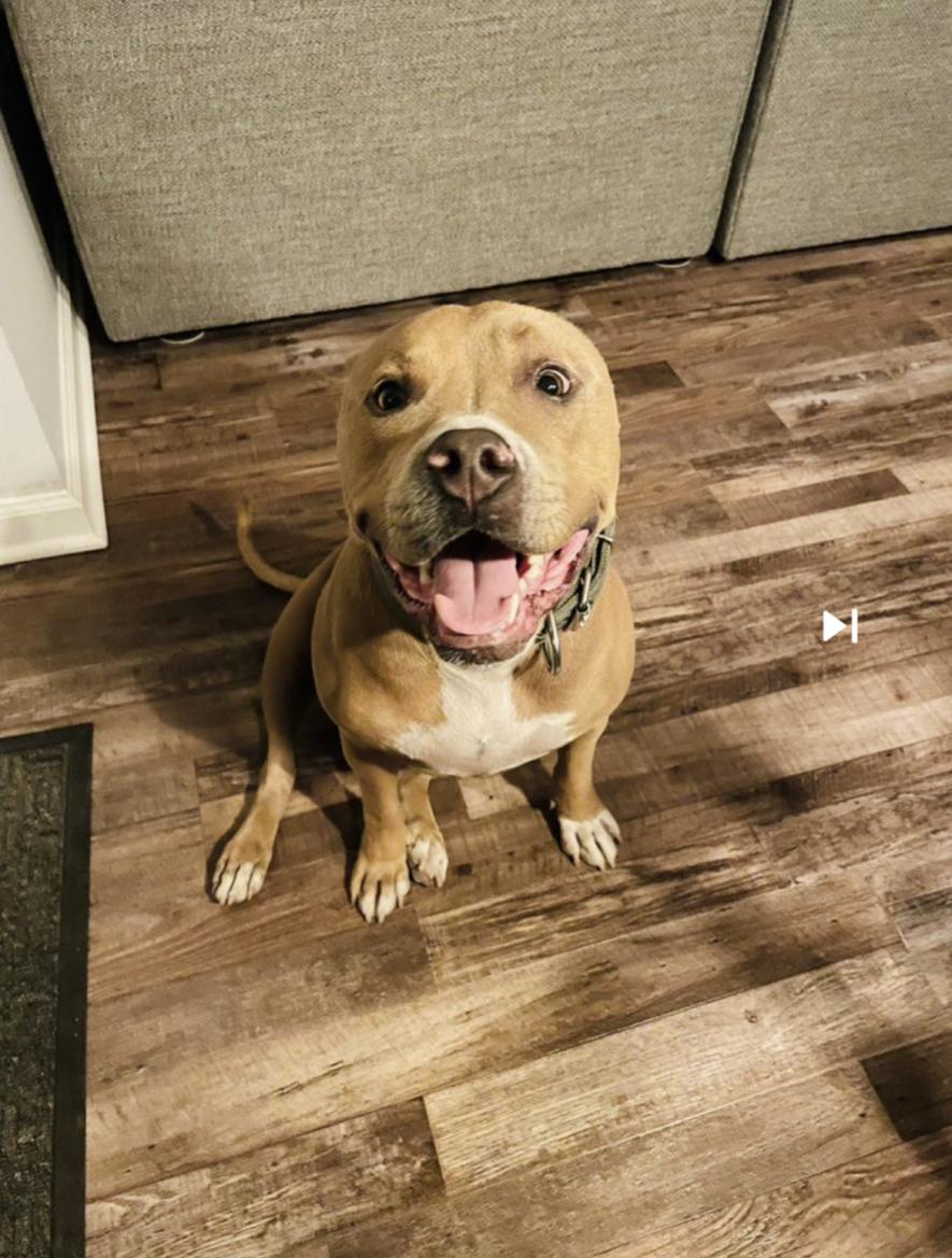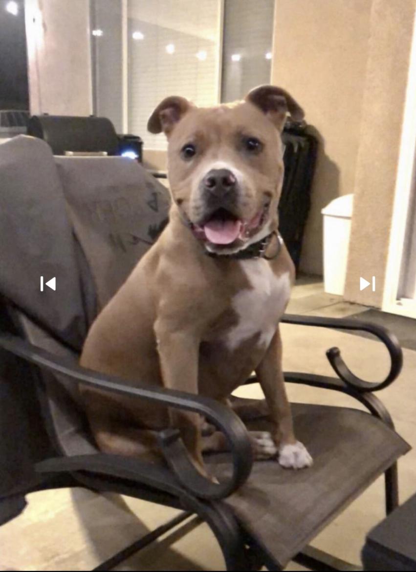 Pet Description:Hammer is a tan colored Pitt Bull, white colored chest and paws, small scar (hairless spot) on his back above his shoulder blades, green collar, and Friendly! |