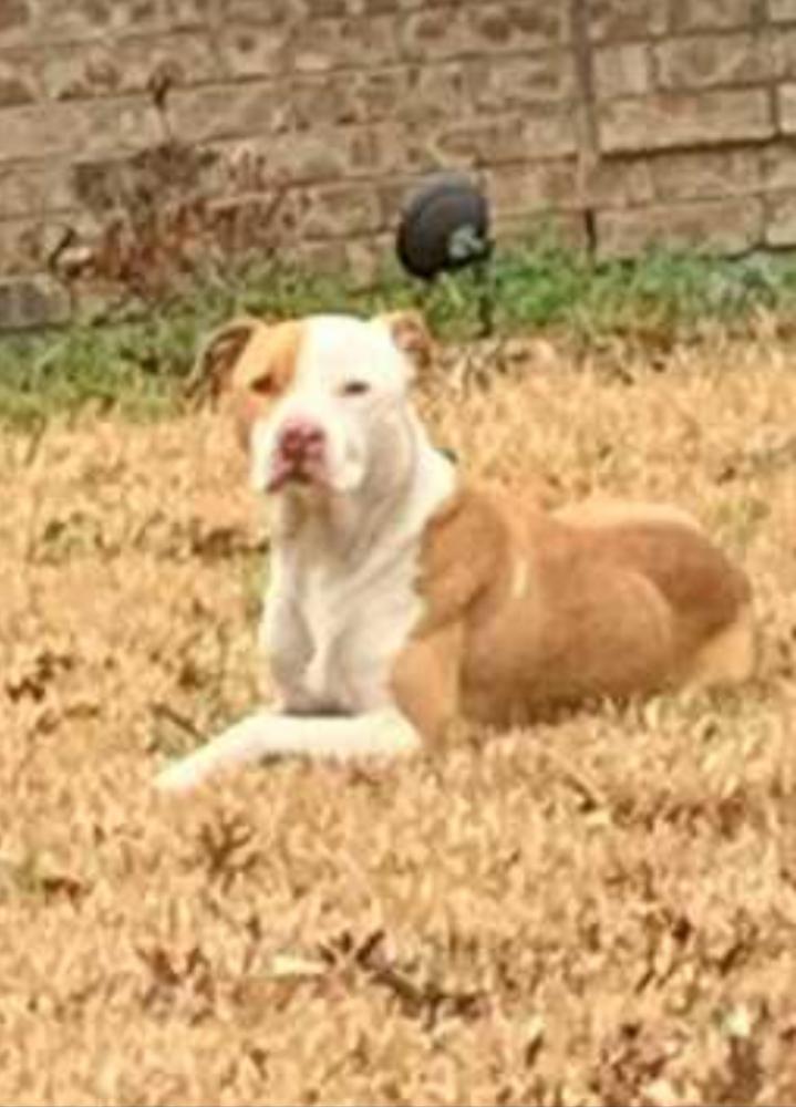 Pet Description:Max is a 40 to 50lbs pitbull mix territor really friendly white and tan color he has a red nose. |