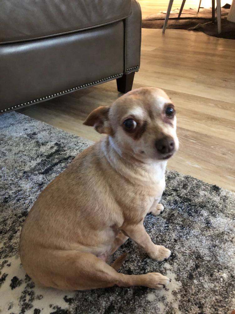 Pet Description:She is a sweet dog but can be timid. She is a golden tan color and a little larger of a chihuahua. She has a small cyst on her left back leg. |