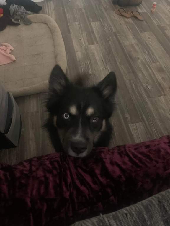 Pet Description:He has one white eye with a spot if white on the other nd two brown eyebrows |