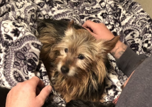 Pet Description:8lbs yorkie Black and Tan senior |