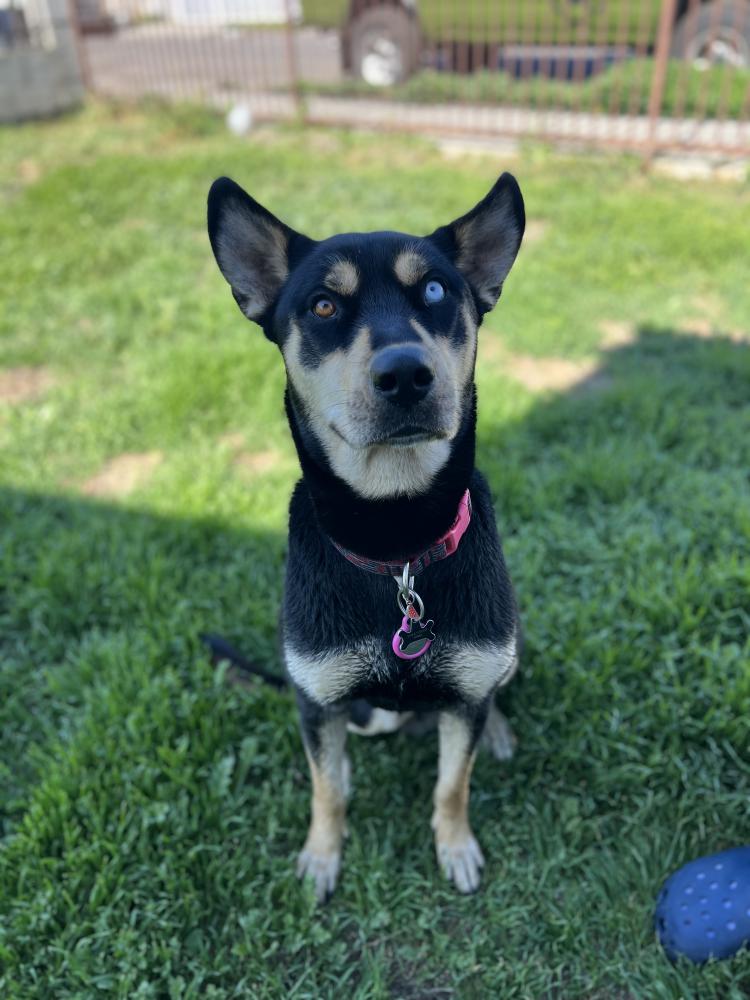 Pet Description:She has a sniffle, and a brown and blue eye |