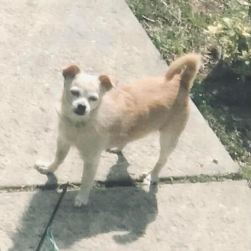 Pet Description:Tan and white. white and gray fleas collars have a green ink mark on belly,, She needs her Medication Reward |