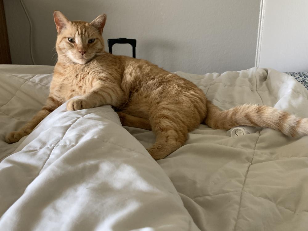 Pet Description:Large, orange tabby cat. $100 reward. |
