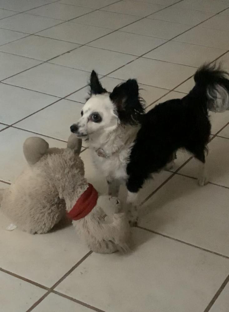 Pet Description:Shes tiny black and white. He face is white she has lots of fur. She has a pink collar. She’s shy and likes hiding. Scared of strangers |