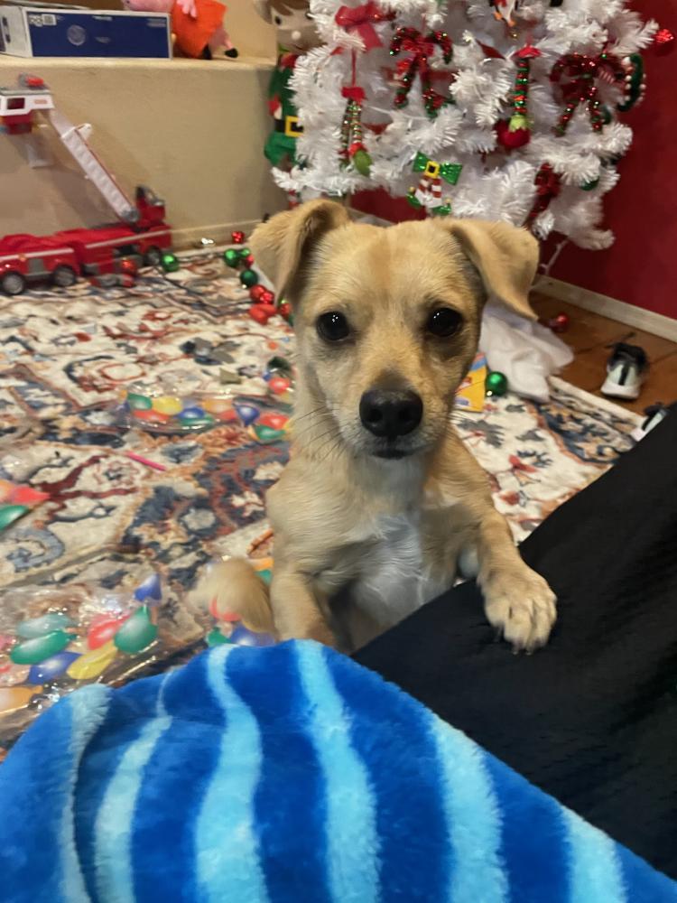 Pet Description:Small to medium size dog, light brown and tan hair, timid dog, curved shaped tail slightly bushy, 10 to 15 pounds approximately three years old |