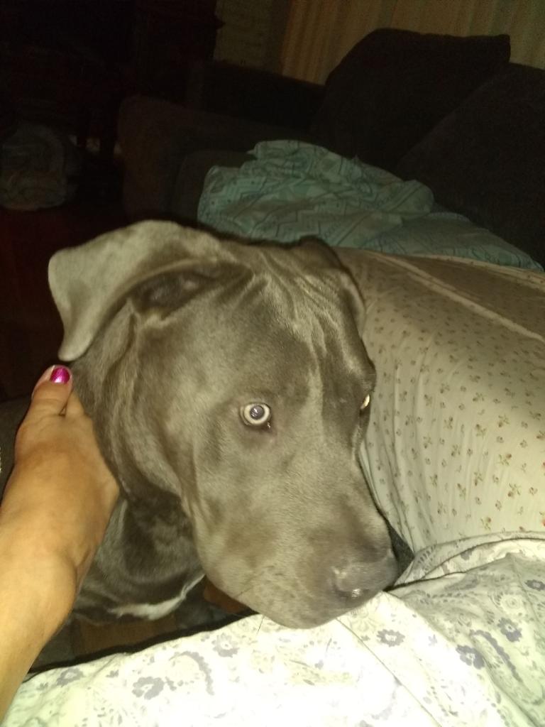 Pet Description:About 2 years old Pitt bull/mastiff. Piercing blue eyes. Has eye infection on right eye. Needs meds. |