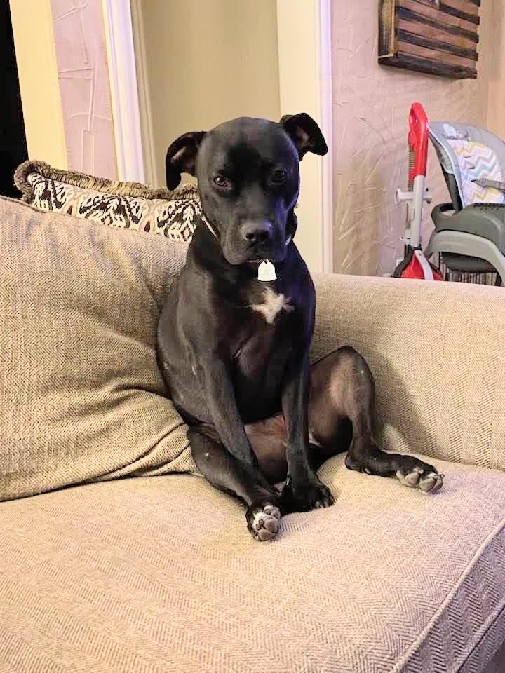 Pet Description:Nova is a sweet pit mix who got spooked by a cow and ran off while my husband and son were camping with her. She was last wearing a faded blue collar with tags and is microchipped. She is a slightly chonky girl with a white star on her chest and answers to nova pup. |