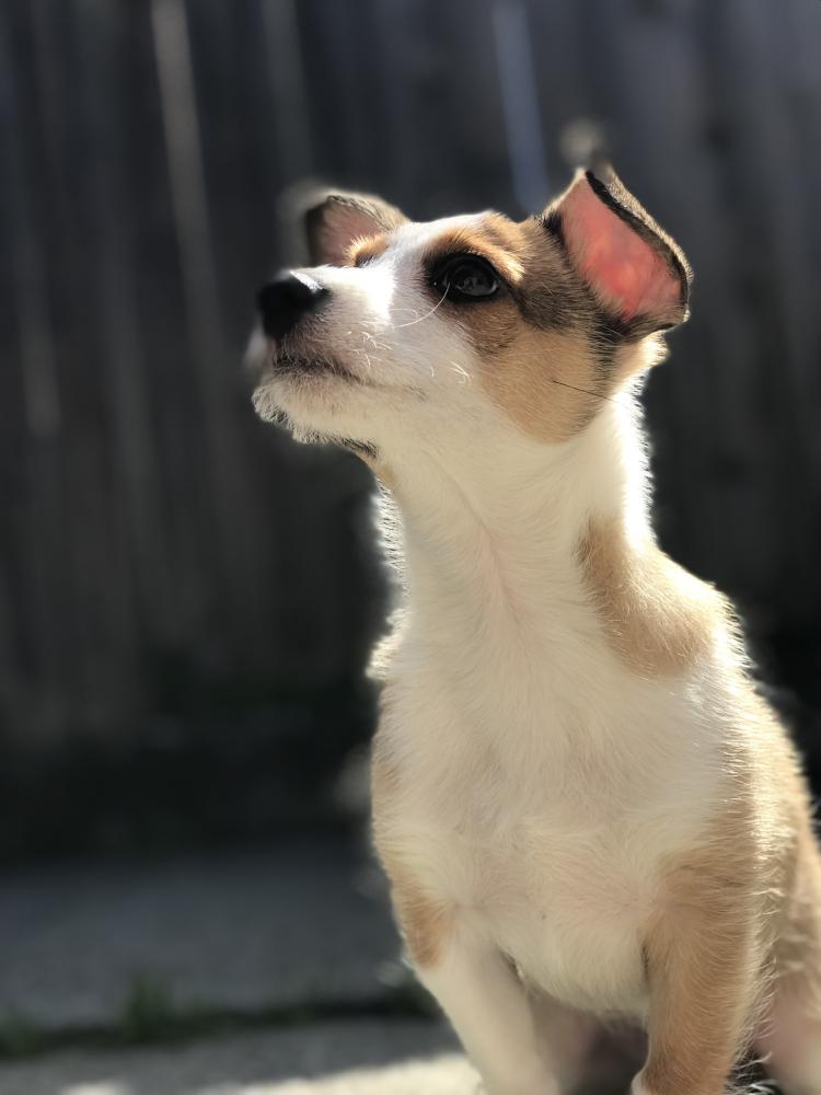 Pet Description:It’s a small dog, he has brown and white furr, has a grey collar and a flea protection collar |