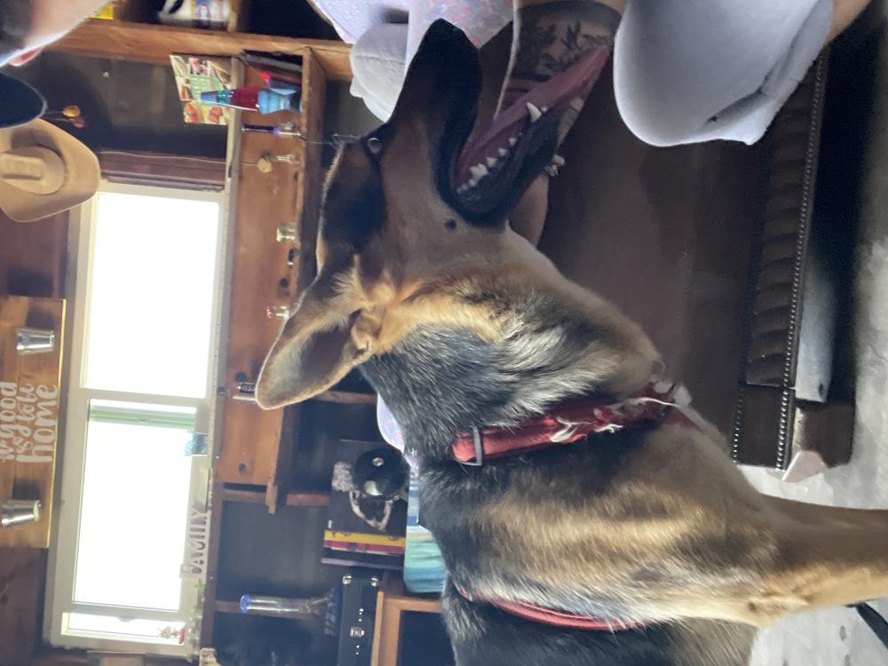 Pet Description:Healthy German Shepherd Was wandering around my neighborhood on peach and San Jose. She has a red harness on. |