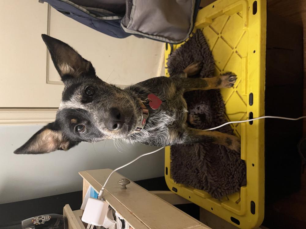 Pet Description:Small female blue heeler wearing black and green collar. Had puppies relatively recently. Answers to Winter. |