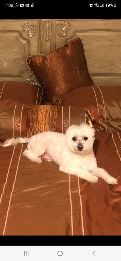 Pet Description:Small white Maltese. He is 14 years old. Small ears and missing some teeth. He responds to Baby and Pupoosh. |