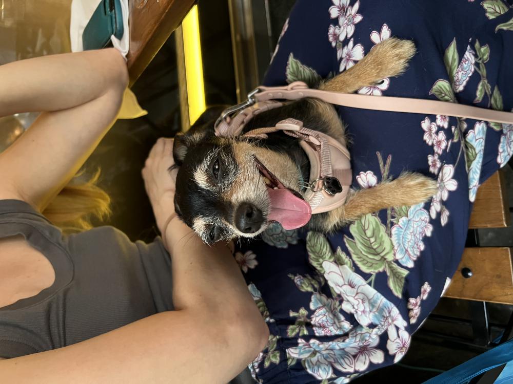 Pet Description:7 lbs black chihuahua mix blue collar |