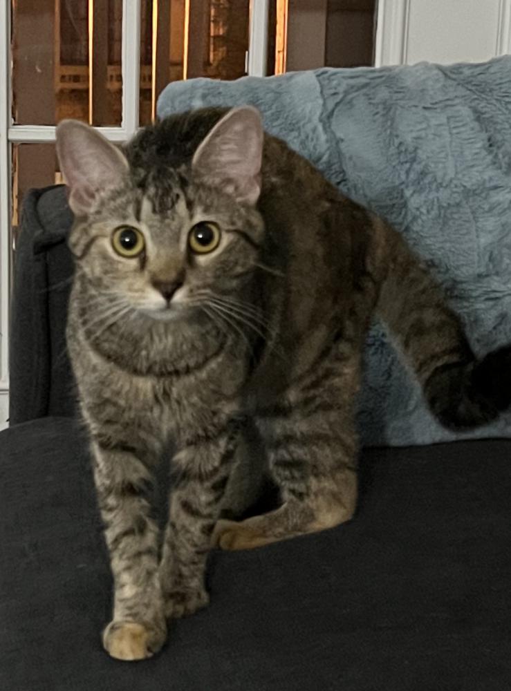 Pet Description:Lost in Carlyle Apts. Small tabby…black brown tan. Sweet but a bit shy. 1-2 years old. No collar. |