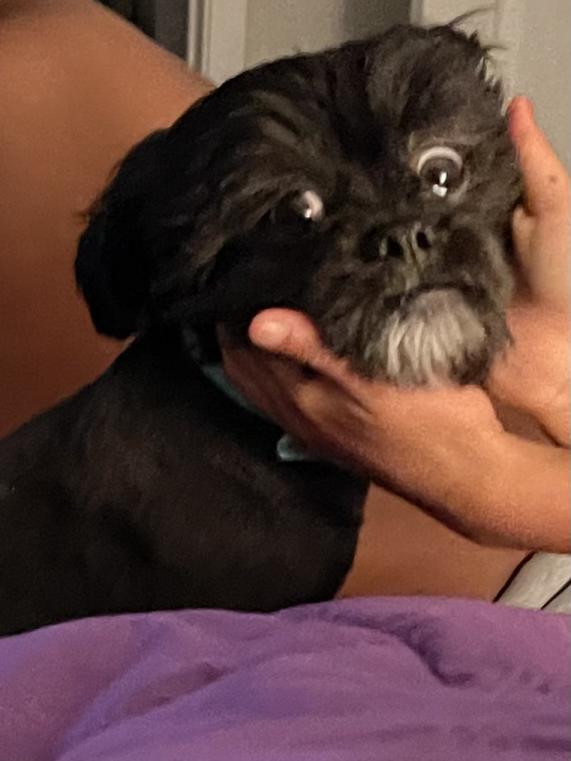 Pet Description:Small black with white fur on his chin, big brown eyes, white fur on his belly. Last seen he had a red, white, gray, with black Christmas sweater on and a turquoise collar with his name in gray writing. |