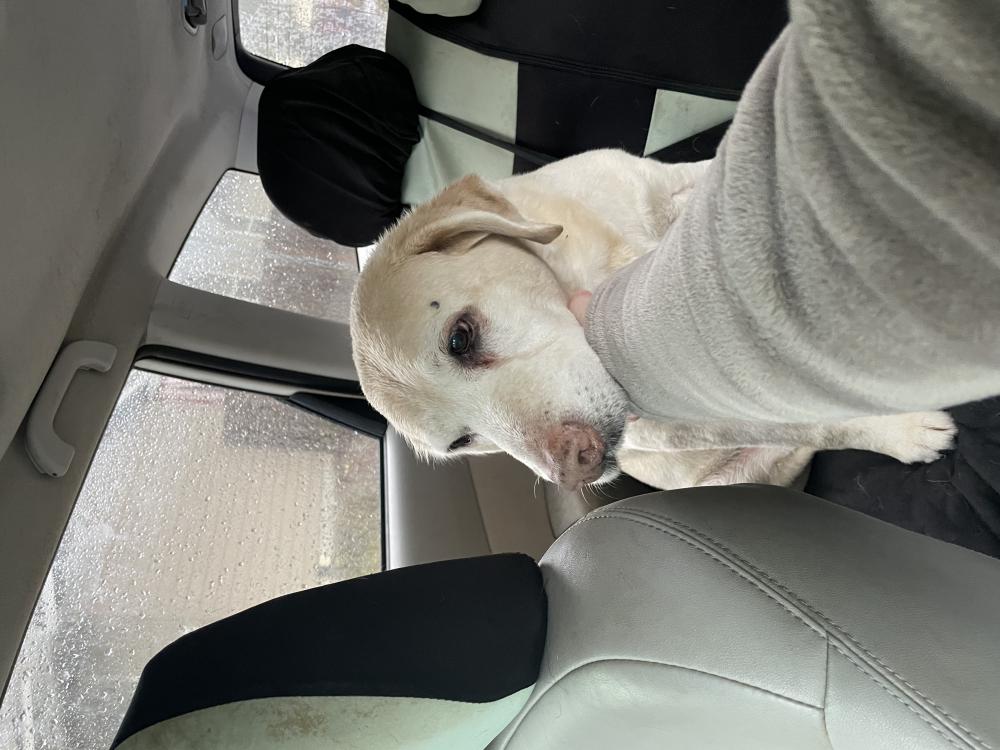 Pet Description:Older yellow lab, sweetest lady with a small black growth above her eye. |