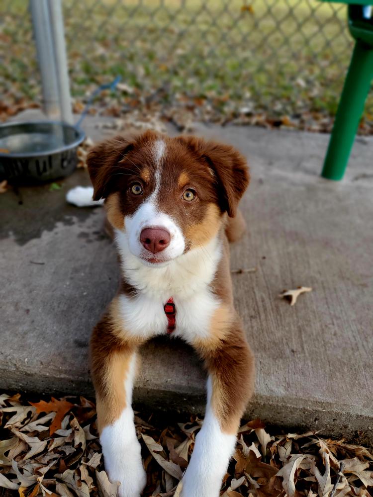 Pet Description:4 month old Austrailian Shepherd puppy. Tri-colored. Mostly red, with copper near her eyes, and white face. She pulled out of her collar. Searched entire main base and still unable to find her. Super playful and very sweet. |